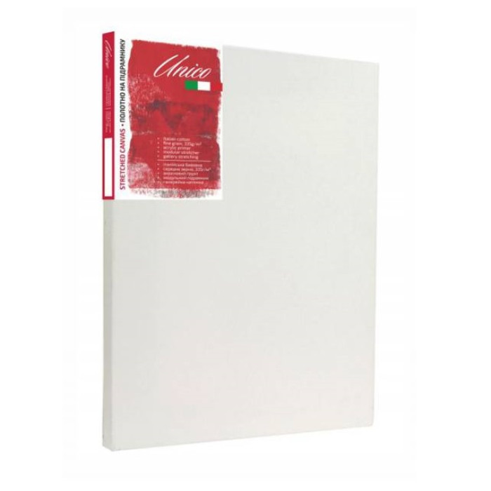 Основні характеристики Полотно на підрамнику бавовна 55х80 см, середнє зерно 335 г/м2, акрил, Італія Unico