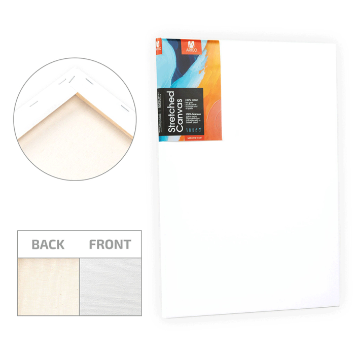 Полотно на підрамнику Arteo виготовлене зі 100% натуральної бавовни щільністю 280 г/м?. Воно не провисає з часом і зберігає рівномірний натяг. Дрібне зерно та еластичний акриловий ґрунт забезпечують легке нанесення фарб, що дозволяє працювати у різних техніках — від детальної графіки до фактурного живопису.