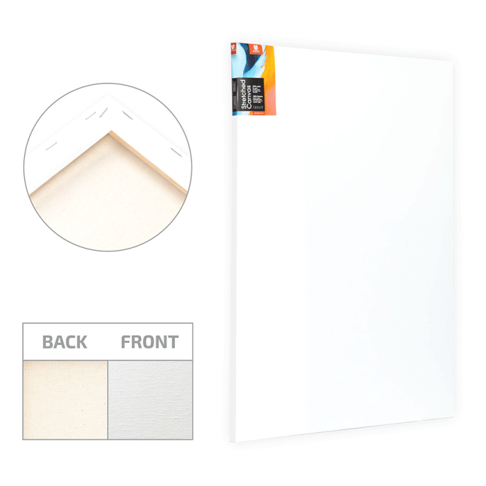 Полотно на підрамнику Arteo виготовлене зі 100% натуральної бавовни щільністю 280 г/м?. Воно не провисає з часом і зберігає рівномірний натяг. Дрібне зерно та еластичний акриловий ґрунт забезпечують легке нанесення фарб, що дозволяє працювати у різних техніках — від детальної графіки до фактурного живопису.