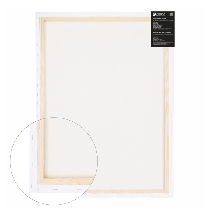 Полотно на підрамнику Arteo виготовлене зі 100% натуральної бавовни щільністю 280 г/м?. Воно не провисає з часом і зберігає рівномірний натяг. Дрібне зерно та еластичний акриловий ґрунт забезпечують легке нанесення фарб, що дозволяє працювати у різних техніках — від детальної графіки до фактурного живопису.