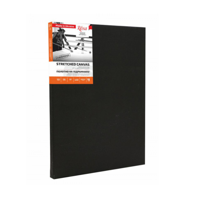 Описание Холст на подрамнике лен 50х70 см, среднее зерно, 335 г/м2 акрил черный грунт ROSA